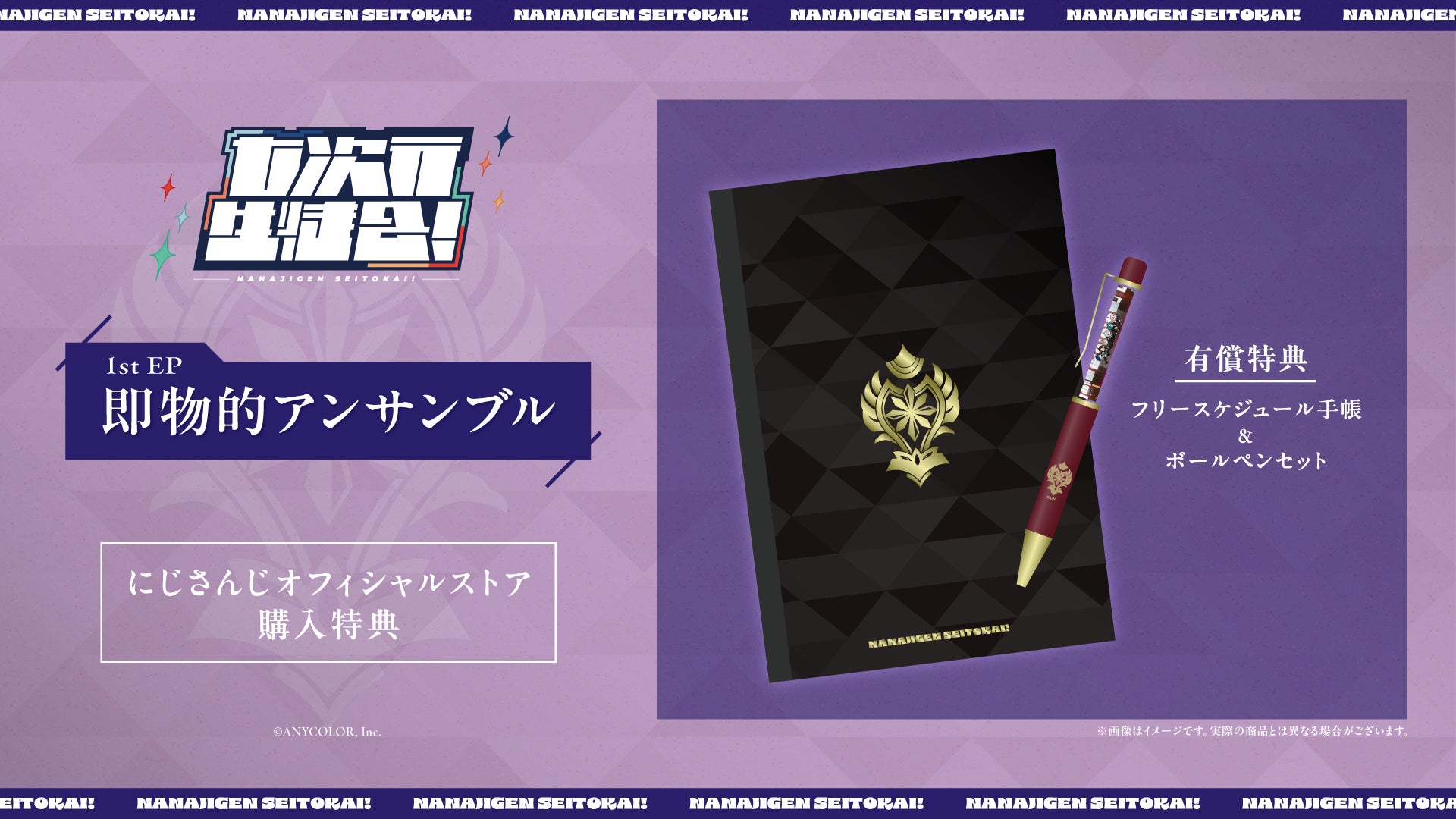 さらに、にじさんじオフィシャルストアの購入特典として「証明写真風 特製ステッカー」、有償特典では「フリースケジュール手帳&ボールペンセット」をご用意。