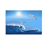 描かれているのは、どこまでも広がる青い海と、空を舞う一羽の鳥。太陽の光を浴びてキラキラと輝く波は、まるで本当にそこにいるかのような臨場感を演出します。この絵画は、見る人の心を一瞬で穏やかなリゾート地へと誘い、深いリラックス効果をもたらします。