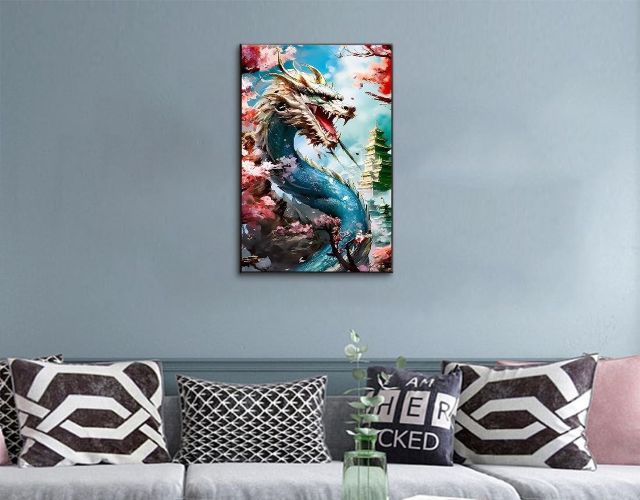 - 高解像度キャンバス印刷: 鮮やかで色褪せにくい高解像度キャンバス印刷により、黄金の輝きや龍の鱗、鳳凰の羽の細部に至るまで、繊細で力強いタッチが表現されています。遠くから見ても、近くで見ても、その美しさに目を奪われます。