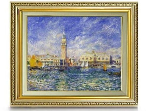 今回ご紹介する「ルノワール Venice, the Doge’s Palace ヴェネツィアのパラッツォ・ドゥカーレ F6 油絵直筆仕上げ」は、彼がイタリアを訪れた際に描いた、息をのむほど美しいヴェネツィアの風景画です。この複製画は、単なる印刷物ではなく、原画の持つ質感と生命力を忠実に再現した、まさに「芸術品」と呼ぶにふさわしい逸品です。