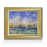 【印象派の至宝を自宅に】ルノワール「ヴェネツィアのパラッツォ・ドゥカーレ」F6号。職人の技が光る「油絵直筆仕上げ」で筆致・質感を完全再現!水の都の輝きを鮮やかな色彩で堪能。高級感あふれるゴールド額縁付きで、リビングが美術館に変わる!