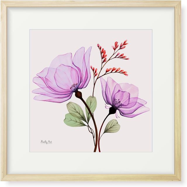 - 自宅のインテリアとして: シンプルモダン、和モダン、クラシックなど、幅広いインテリアテイストに馴染みます。黒やゴールドの額縁が、バラの紫をさらに引き立て、空間に引き締め効果をもたらします。